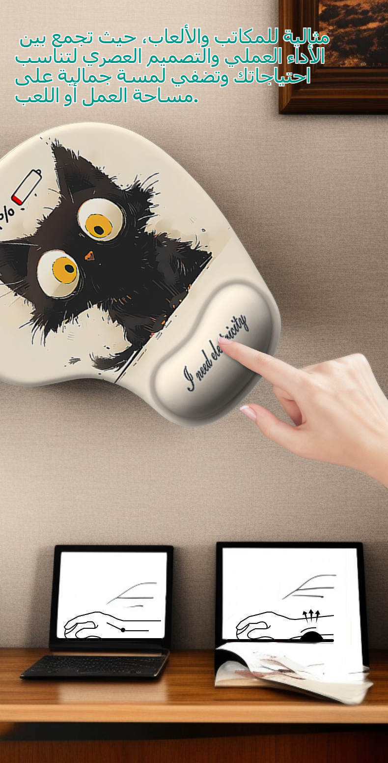 ● تتميز وسادة الفأرة بمعصم سيليكون بتصميم مريح يدعم المعصم ويقلل من الإجهاد أثناء العمل أو اللعب لفترات طويلة، مما يمنحك راحة لا مثيل لها.